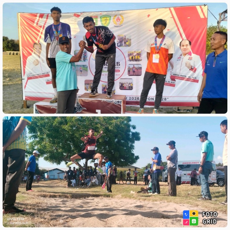 Atlet muda Kecamatan Alas, Ahdial Bahri ZM, sukses meraih medali emas pada nomor lompat jauh putra dalam ajang Pekan Olahraga Kabupaten (Porkab) Sumbawa 2025, yang berlangsung di Stadion Cendrawasih, Kamis (11/9/2025).