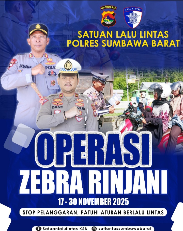 BerandaKSBSatuan Lalu Lintas Polres Sumbawa Barat Mengelar Oprasi Sebra Rinjani 2025 Dari Tanggal 17/30 November 2025. Stop Pelanggaran, Patuhi Aturan Berlalu Lintas