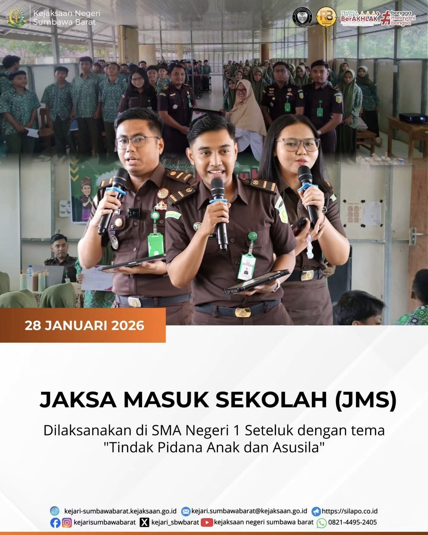 Sumbawa Barat | Bintangtv.id – Kejaksaan Negeri (Kejari) Sumbawa Barat melalui Bidang Intelijen kembali melaksanakan kegiatan Penyuluhan Hukum dalam program Jaksa Masuk Sekolah (JMS) di SMA Negeri 1 Seteluk, (28/1/2026).