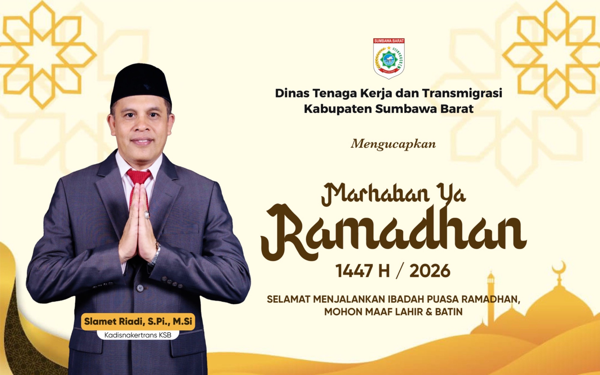 Dinas Tenaga Kerja dan Transmigrasi Kabupaten Sumbawa Barat mengucapkan Marhaban ya Ramadhan 1447 H/ 2026