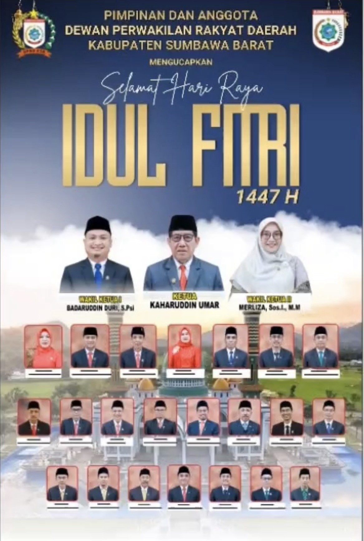 Beranda KSB Pimpinan dan Anggota Dewan Perwakilan Rakyat Daerah Kabupaten Sumbawa Barat mengucapkan Selamat Hari Raya Idul Fitri 1447 H KSBPimpinan dan Anggota Dewan Perwakilan Rakyat Daerah Kabupaten Sumbawa Barat mengucapkan Selamat Hari Raya Idul Fitri 1447 HIrwan0 min bacaMaret 19, 202656×Pimpinan dan Anggota Dewan Perwakilan Rakyat Daerah Kabupaten Sumbawa Barat mengucapkan Selamat Hari Raya Idul Fitri 1447 HSebarkan artikel ini Post Views: 56 Pos TerkaitKSBKepala Kepolisian Resort Sumbawa Barat Beserta Staf dan Jajaran mengucapkan Selamat Hari Buruh Nasional 1 Mei 2026KSBDinas Tenaga Kerja dan Transmigrasi Kabupaten Sumbawa Barat mengucapkan Selamat Hari Buruh 1 Mei 2026KSBKeluarga Besar Dinas PUPR Sumbawa Barat mengucapkan Mari Bersama Sukseskan Sensus Ekonomi 2026KSBRSUD Asy-Syifa’ dan BNN Perkuat Sinergi Penanganan Narkotika di Sumbawa BaratKSBWujud Nyata Dukungan Polri terhadap Ketahanan Pangan Bhabinkamtibmas Desa Tatar Dampingi Petani Panen JagungKSBOrang Tua Atlet Soroti Pelayanan Bank NTB Syariah di Sumbawa Barat