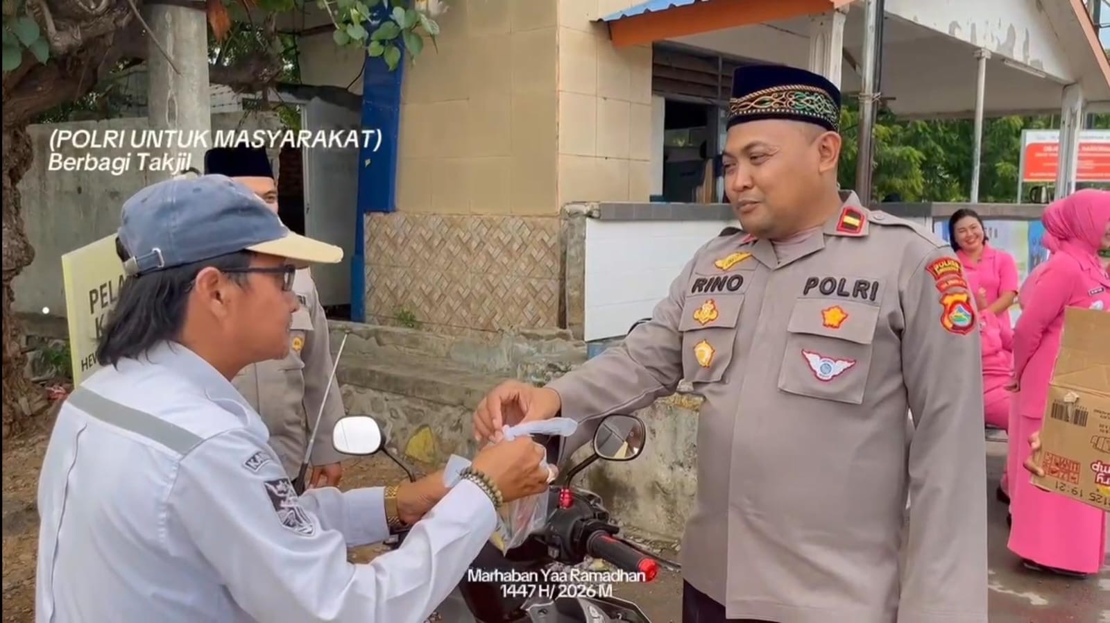 Sumbawa barat|Bintangtv.id-Personel Polsek KPL Tano melaksanakan kegiatan pembagian takjil kepada masyarakat dan pengguna jasa di pintu gerbang Pelabuhan Poto Tano. Kegiatan ini dipimpin langsung oleh Kapolsek KPL Tano, IPDA Rino Ansori, S.H., bersama Ketua Bhayangkari Ranting Cabang KPL Tano.(14/3/2026)