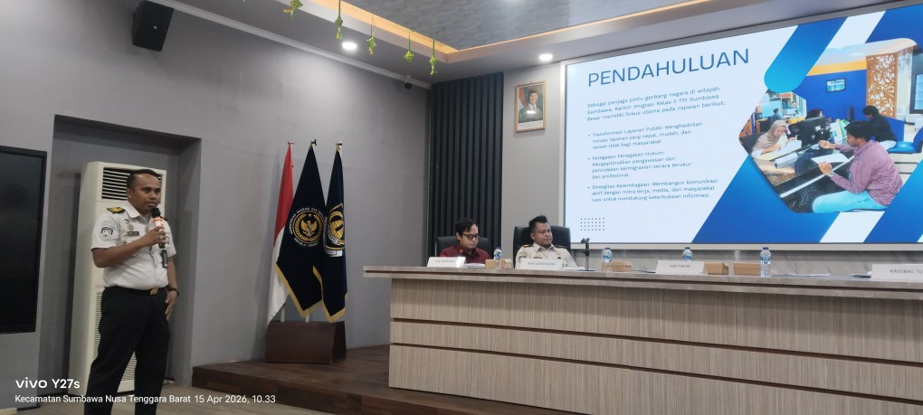 Kepala Kantor Imigrasi Sumbawa Besar, Tedy Anugraha, melalui Kepala Seksi Teknologi Informasi dan Komunikasi Keimigrasian (Tikim) Abdul Haris, Rabu (15/4/2026), menyampaikan bahwa capaian ini merupakan hasil kerja keras seluruh jajaran dalam membangun zona integritas.