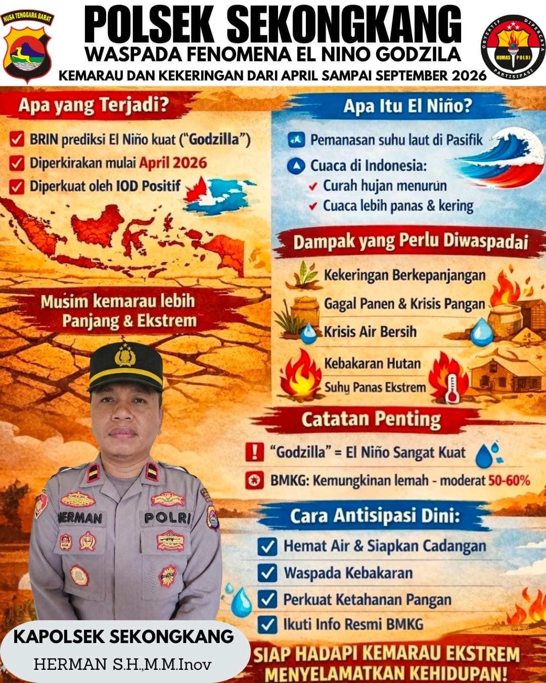 Polsek Sekongkang Polres Sumbawa Barat Himbau Mengenai Waspada Cuaca Ekstrem El Nino